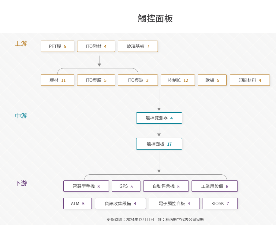 觸控面板產業是一條高度分工、層層堆疊的產業鏈。