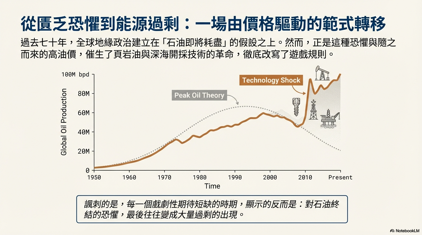這種由科技推動的產能爆發,才是石油市場最具代表性的特徵,而非持續性的稀缺狀態。