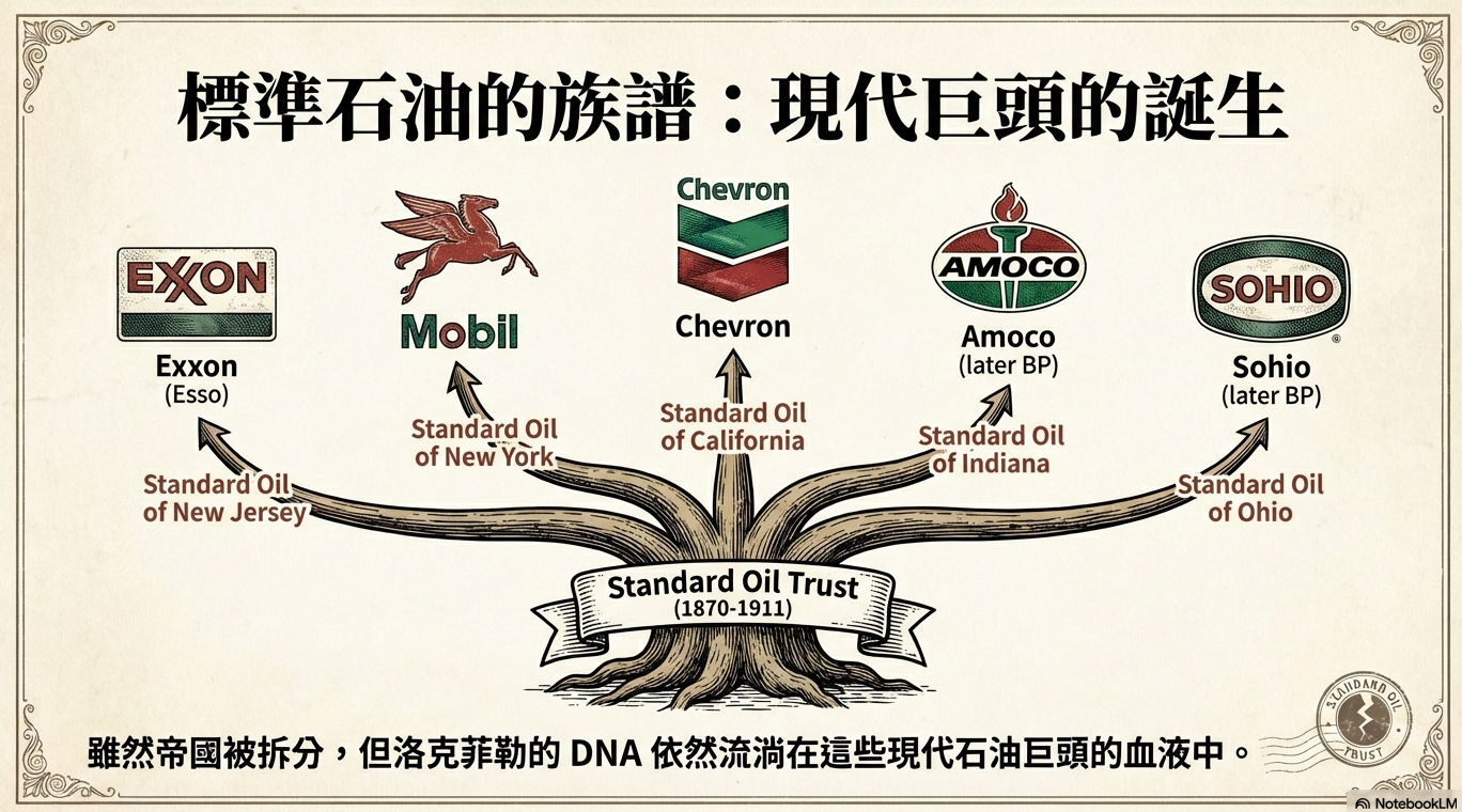包括後來成為埃克森、雪佛龍、BP 與 Royal Dutch Shell 的企業。