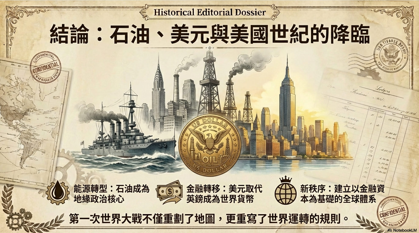 戰後,美國控制了全球近 70% 的石油產量,紐約取代倫敦,成為世界金融中心。皇家海軍的石油戰略、摩根的金融信貸、聯準會的制度支援、CFR 與 RIIA 的戰後規劃——共同完成了一次結構性的權力轉移。