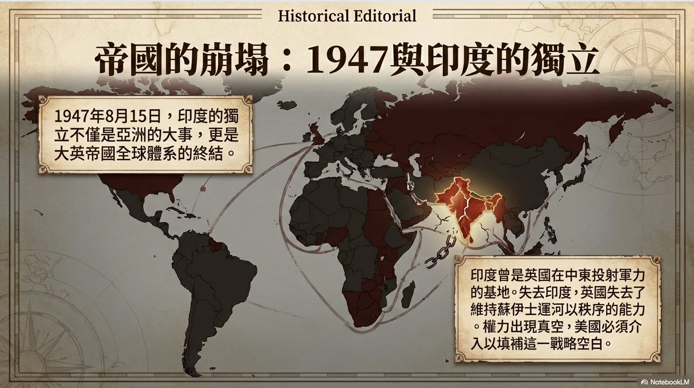1945 年 8 月 15 日,日本投降,二戰結束。就在同一天,美國軍方已完成第五艦隊 常駐印度洋與波斯灣的戰略構想。這不是巧合,而是宣告:戰後秩序的第一優先事項,是能源航道與產地控制。和平來臨的瞬間,新的權力配置已同步啟動。