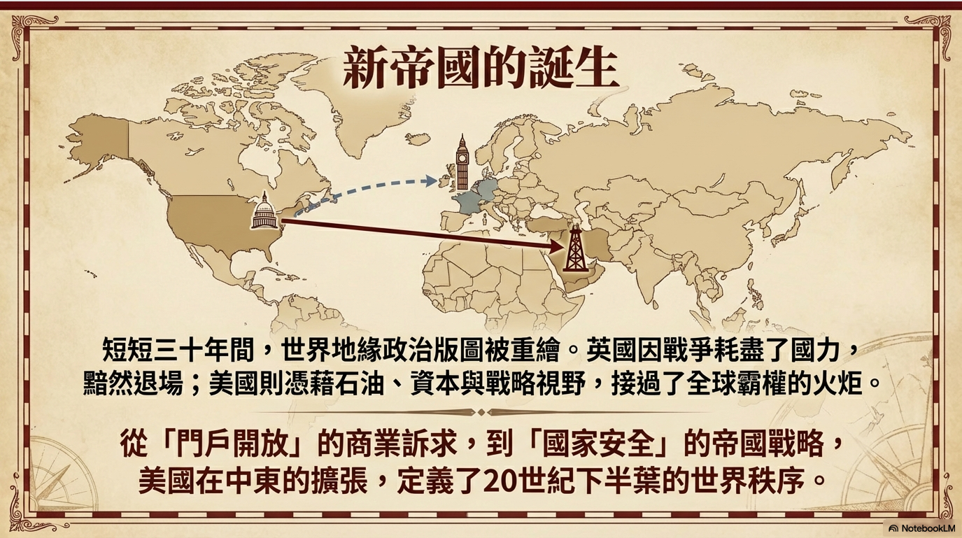 從能源赤字到門戶開放,從戰時預判到戰後接管,美國在中東的角色從不是偶然。這是一部橫跨百年的石油戰略史,也是美國霸權真正的奠基過程。理解這段歷史,我們或許才能更清醒地看見——當今地緣政治衝突中,那些真正不變的核心動力。