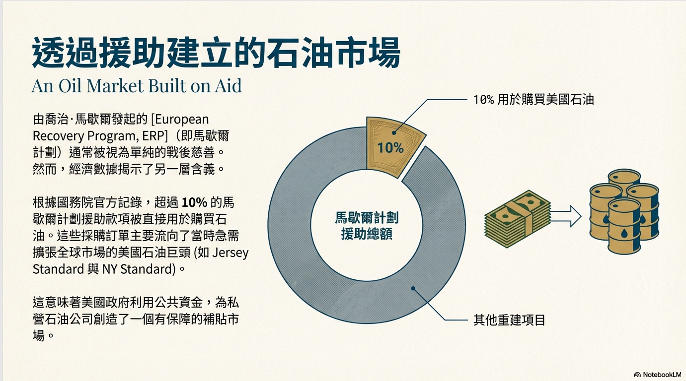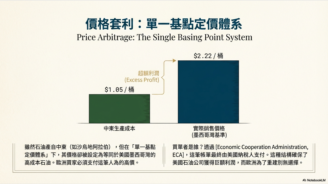 ECA 的介入,迫使油價從 2.22 美元降至 1.85 美元,並揭露部分企業在歐洲市場的利潤率高達 40–50%。這說明一件事:即使在霸權體系內,公共利益與企業暴利仍長期處於拉鋸狀態。