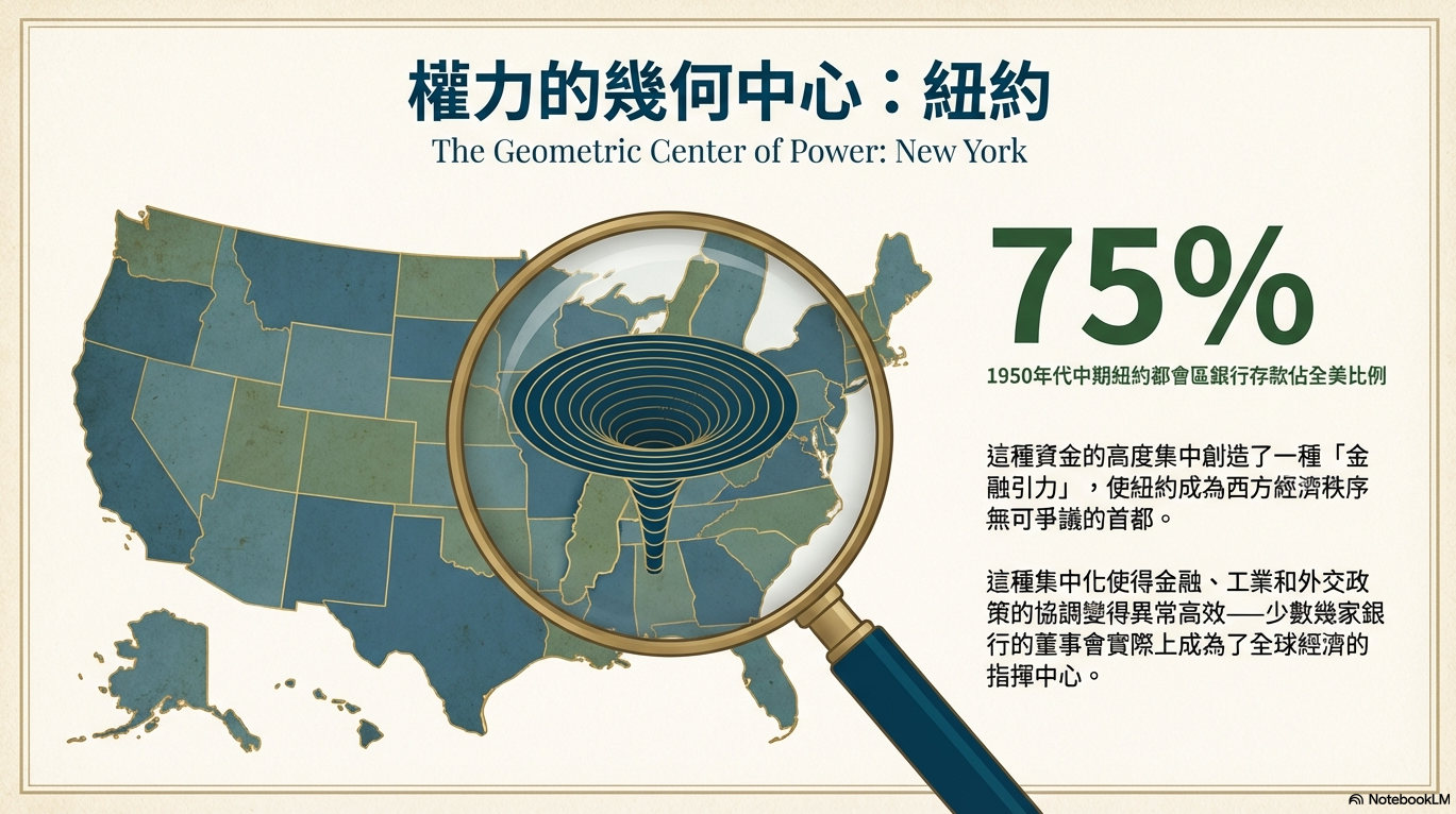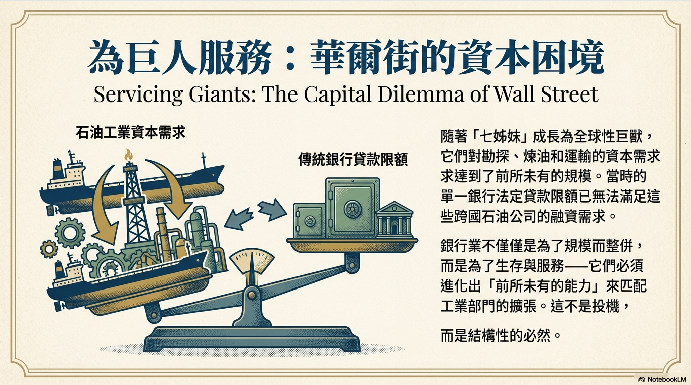 打造能承擔 中東與拉美數億美元石油投資案 的金融巨獸。到了當時,紐約銀行已掌握全美約 75% 的銀行存款。石油需要資本,而資本,必須先集中。